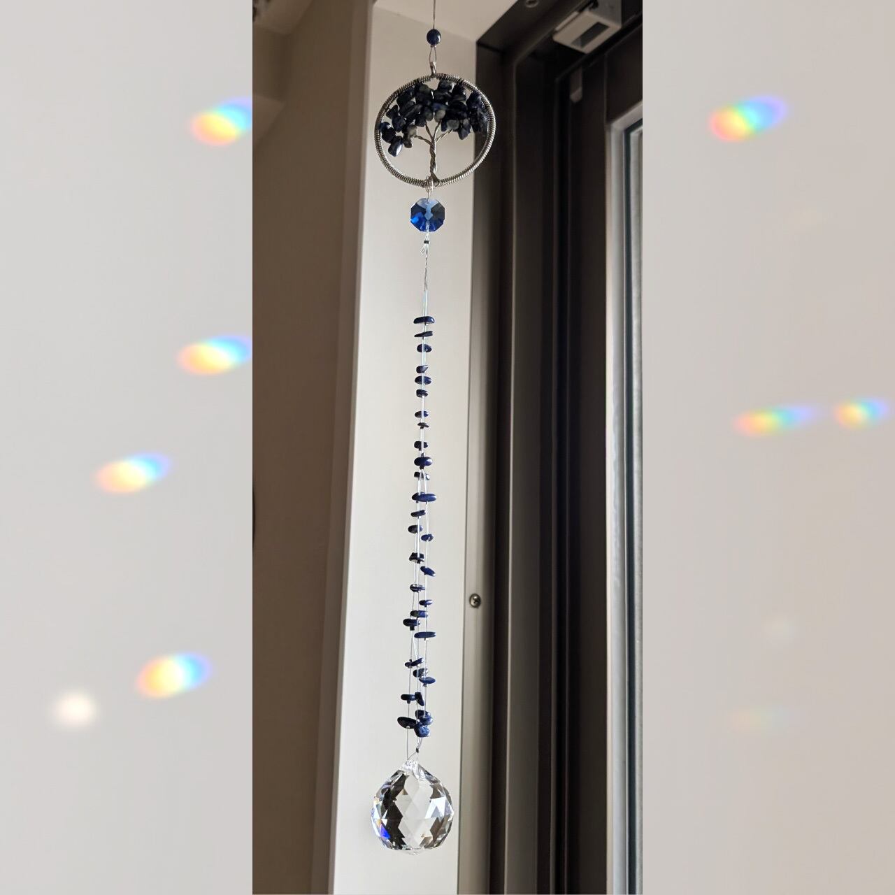 このサンキャッチャーは、天然石ラピスラズリを贅沢に使用した一品です。