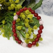 高品質な赤メノウと美しいローズクォーツを使用したパワーストーンブレスレット。