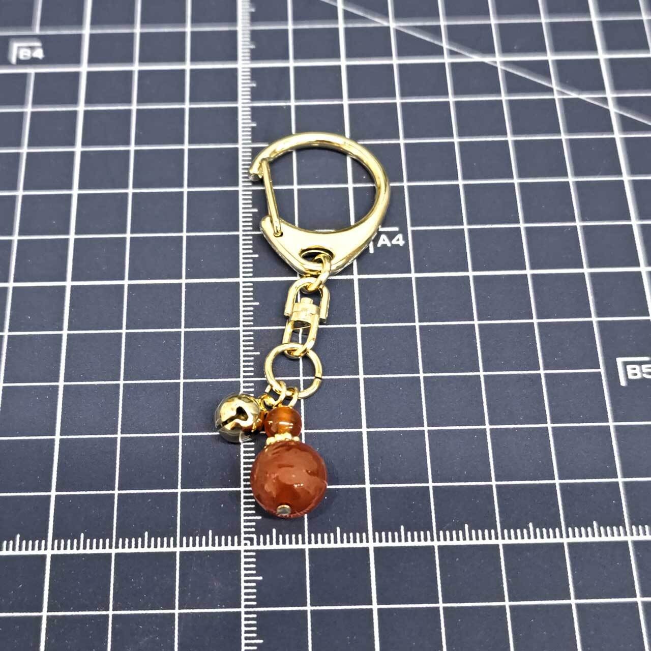 カーネリアンの丸玉に龍を素掘りした特別なキーホルダーです。