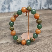 健康を願うパワーストーンブレスレット、アベンチュリンとユナカイトの組み合わせです。アベンチュリンは心のバランスを整える効果があり、ユナカイトは身体のリズムを整える力を持ちます。ストレスや疲れが溜まっている時には、このパワーストーンブレスレットを身に着け、癒しと安らぎを体感してください。